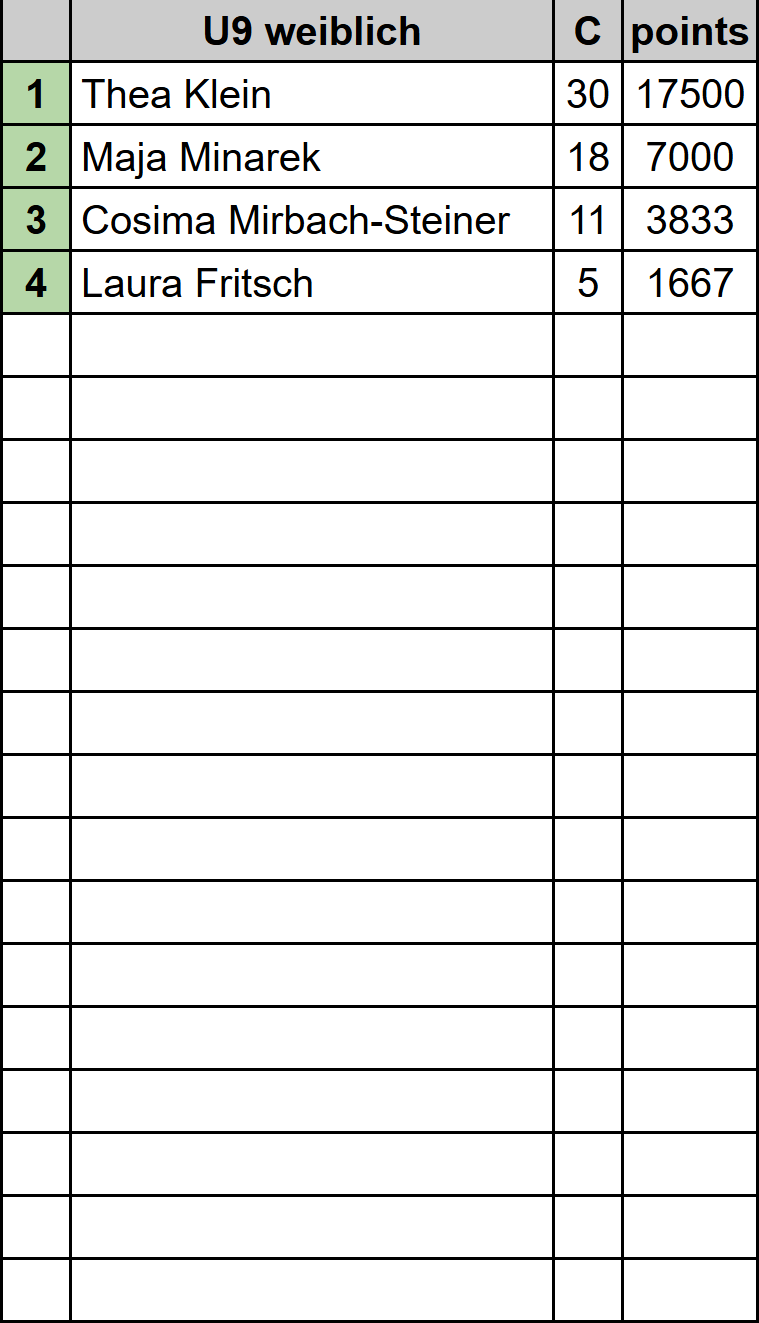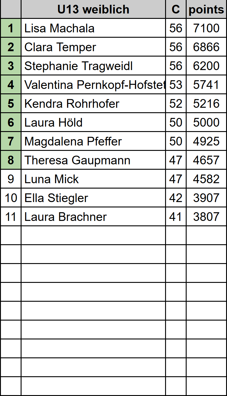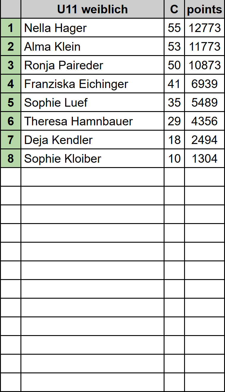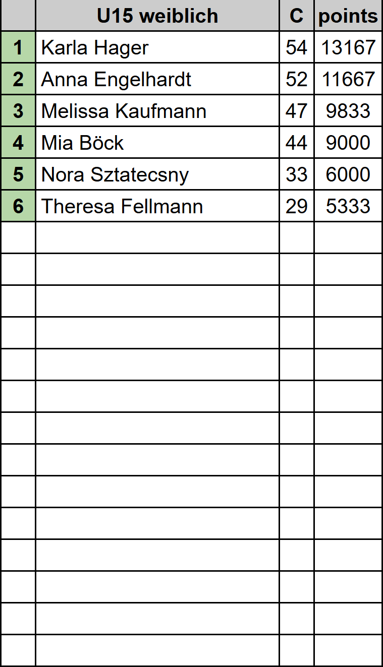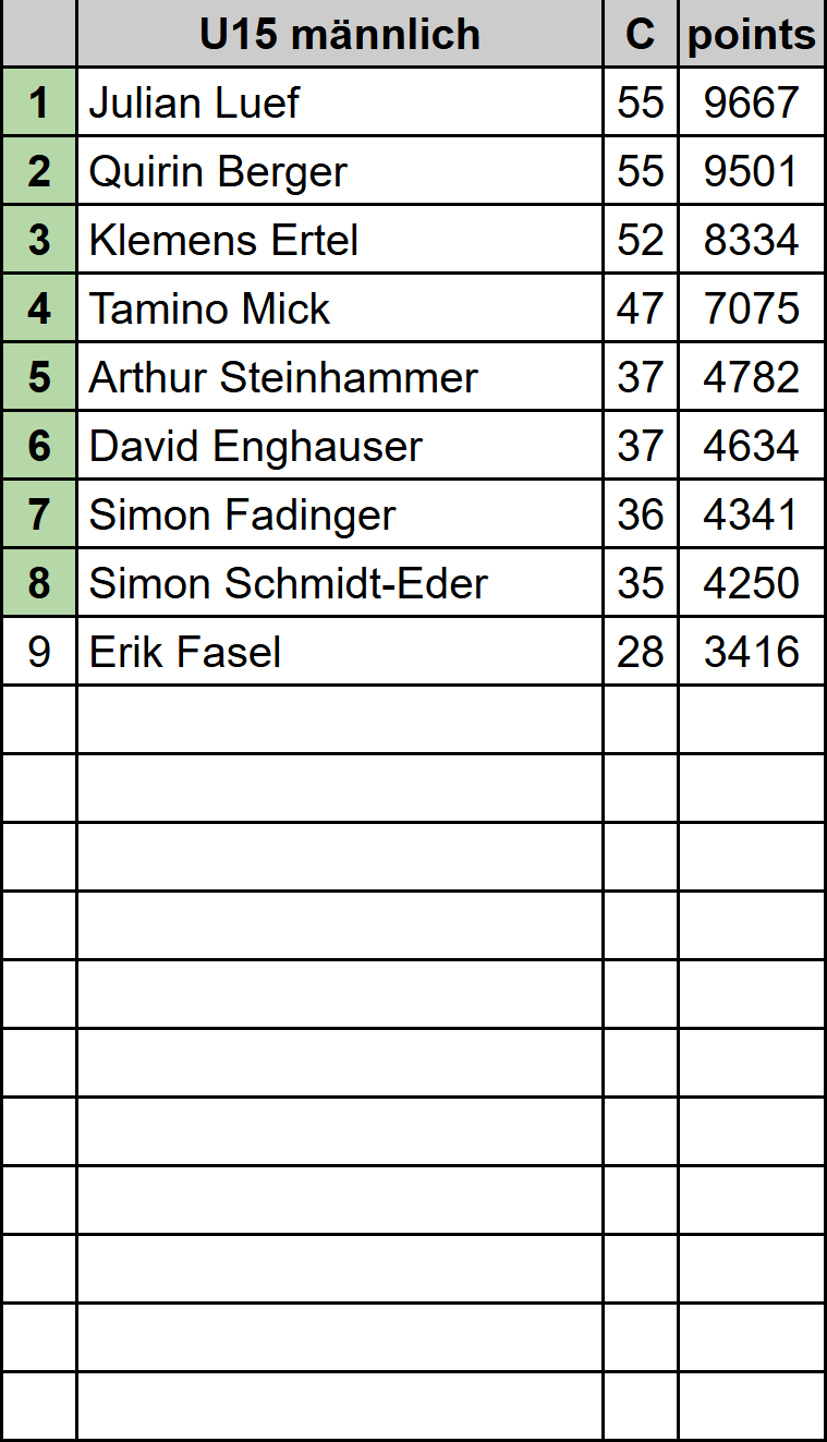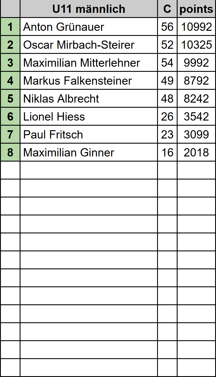 Der letzte Tag der Kraftwerkchallenge ist verstrichen und damit nun hier der “finale” Zwischenstand. Wir bitten um eine Rückmeldung aller Finalisten ob sie am 25.1. Zeit haben um am Finale teilzunehmen. Sollte einer der Finalisten ausfallen rückt der Nächste nach. Es sind natürlich alle Teilnehmer herzlich zum Finale eingeladen, am Ende des Tages nehmen alle anwesenden Teilnehmer an einer Tombola teil!